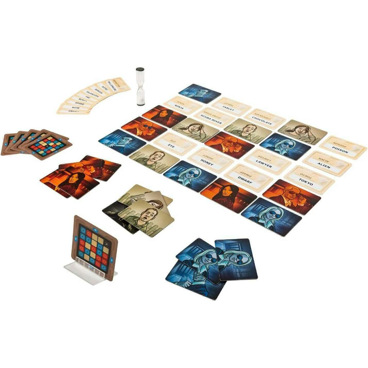 The worldwide smash-hit party game that anyone can enjoy! Two teams compete to make contact with their agents, with spymasters giving one-word clues to their teams that relate to the code words on a grid of 25 agents. Guess words of the right colour while avoiding those of the opponents’ colour – and if anyone guesses the Assassin, their team immediately loses.
