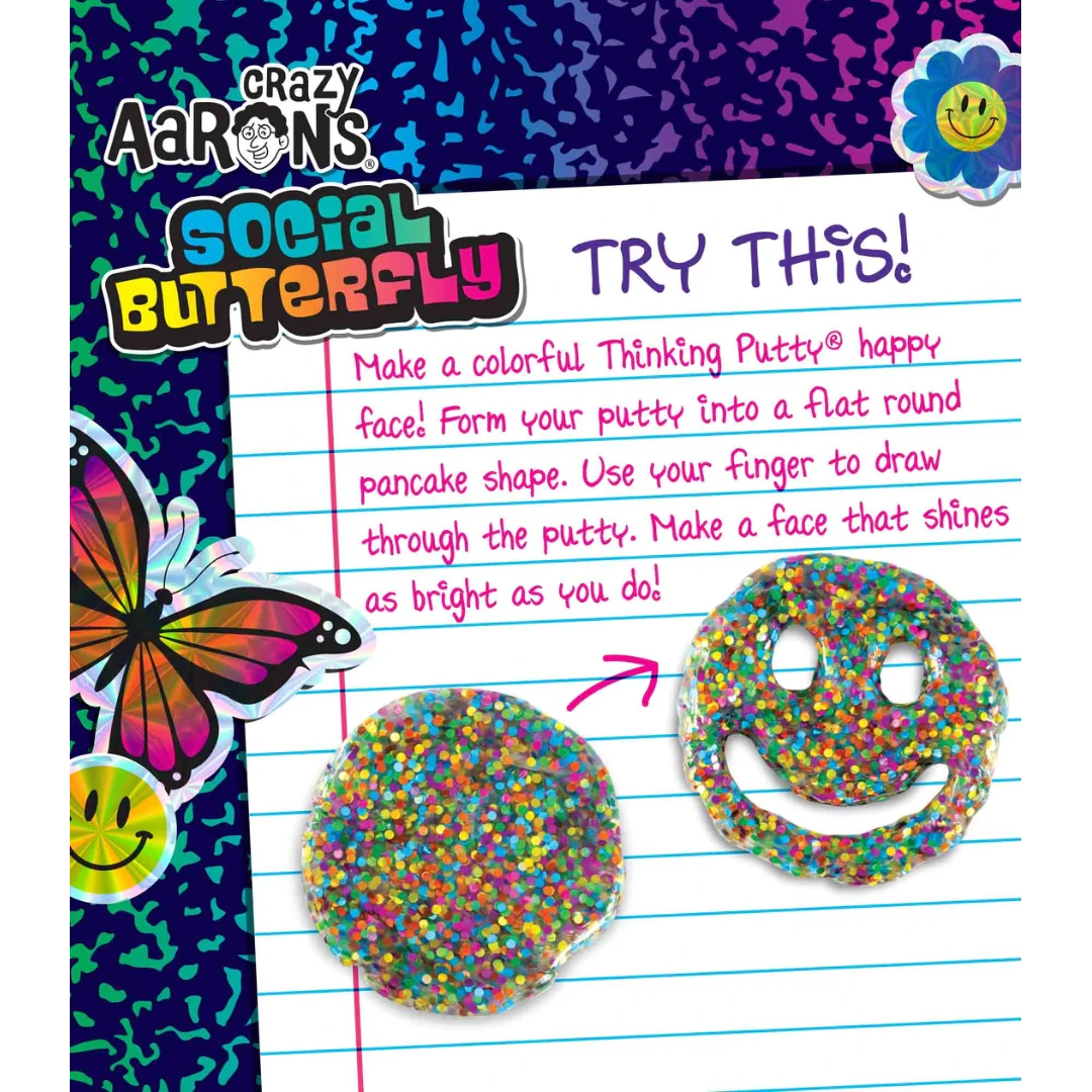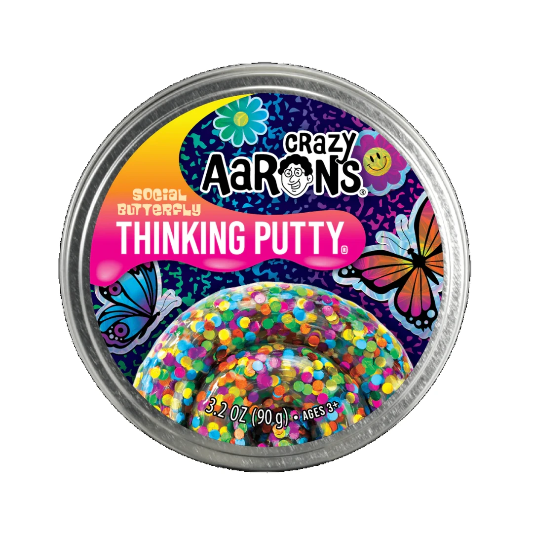 Social Butterfly Thinking Putty® is full of charisma and charm just like you! Whether you’re a self-described social butterfly or a wallflower, this lively rainbow confetti putty will get the party started.