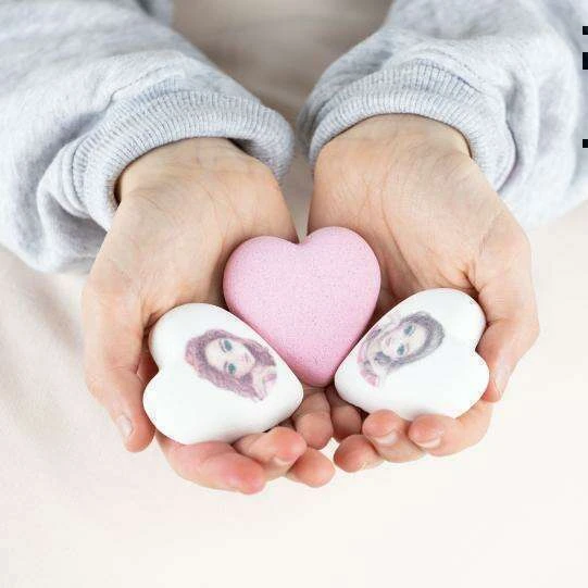 Hearty bathing fun from TOPModel: 3 heart-shaped bath bombs (2x white with model motif, 1x pink). They dissolve quickly in warm bath water and exude a pleasant strawberry fragrance. 3x 30g.