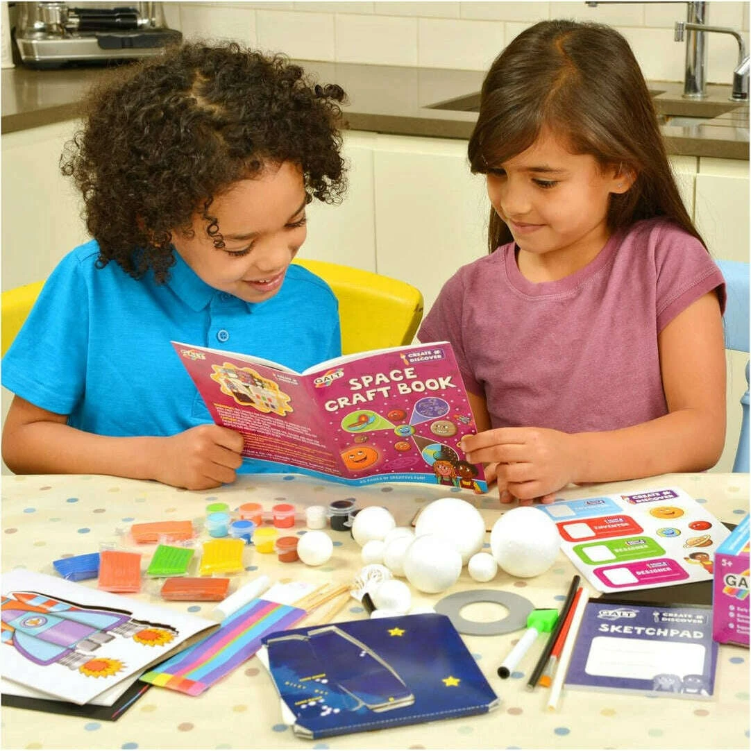 The space craft set combines art, science and crafting. The arts and crafts kit for kids has 7 stellar activities from building a solar system to a cool constellation projector!