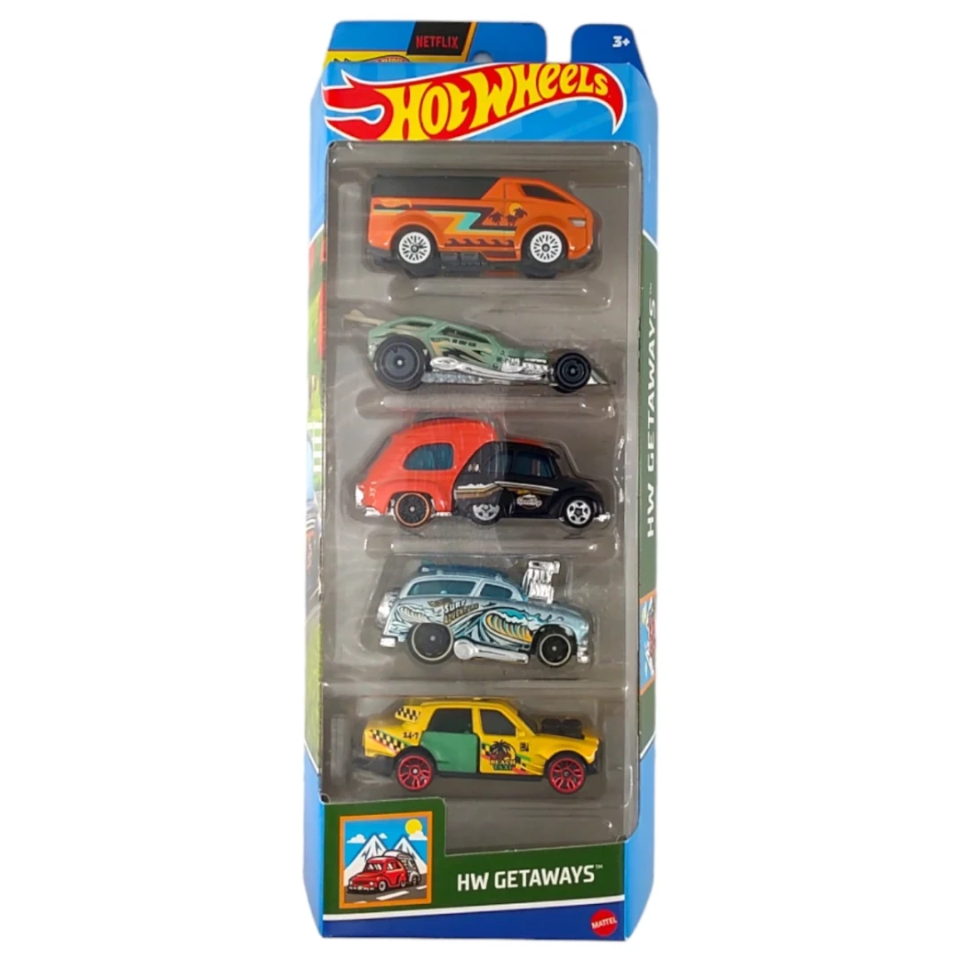 Hot Wheels 5-Car packs deliver five times the amped up action! With a cool unifying theme, authentic details and eye-catching decos. Speed into an instant Hot Wheels collection with a race-ready pack of five highly detailed vehicles.