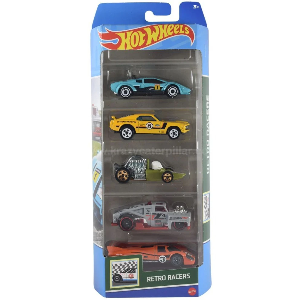 Hot Wheels 5-Car packs deliver five times the amped up action! With a cool unifying theme, authentic details and eye-catching decos. Speed into an instant Hot Wheels collection with a race-ready pack of five highly detailed vehicles.