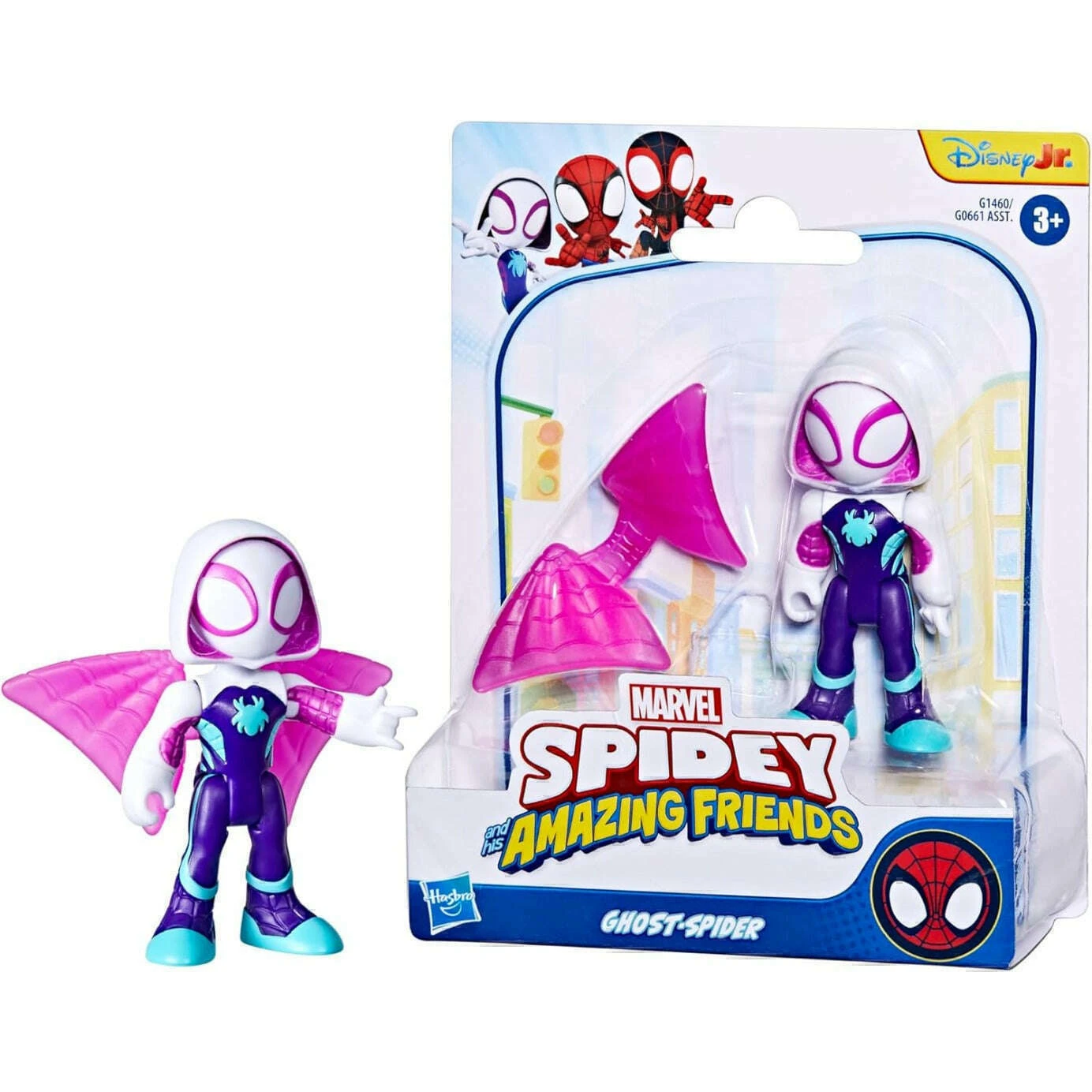 Join Team Spidey on the latest wall-crawling adventures with this collectible Marvel Ghost-Spider figure! This 7.6-cm (3 inch) Marvel Spider-Man toy features entertainment-inspired design and deco, as well as a web wings accessory that attaches to the figure’s back. Encourage big, imaginative, adventure play for children ages 3 and up with this Marvel toy set! Keep an eye out for even more Spidey and his Amazing Friends figures, including Spidey, Miles ‘Spin’ Morales, Ghost-Spider and Green Goblin, to build a Super Hero web slinger collection or give as cool Marvel presents for preschool children! (Each sold separately. Subject to availability.) Copyright MARVEL. All trademarks and registered trademarks are the property of their respective owners. HASBRO and all related trademarks and logos are trademarks of Hasbro, Inc.