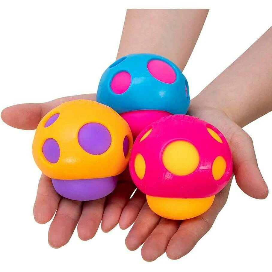 Squeeze the neon mushroom 3 colours available and watch as the colour pops through the toadstool hole; a fun kids stress ball & fidget toy