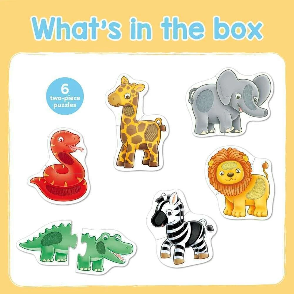 Introduce your little ones to the exciting world of jungle animals with these fun multi-sensory Match and Feel puzzles! Designed for babies and toddlers from 18 months these chunky two-piece puzzles are perfect for small hands and curious minds.