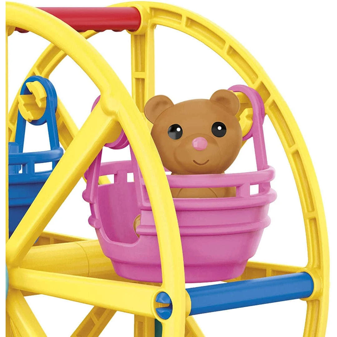 Enjoy a day at the fair with the Peppa’s Ferris Wheel playset! This adorable playset comes with a Peppa figure, teddy-bear accessory, and a Ferris wheel that really spins. This special Peppa Pig figure in her pink polka-dot dress can sit in the Ferris wheel baskets for exciting imaginative play. Peppa can bring her teddy bear along for the ride, too! Pre-schoolers will love spinning the colourful Ferris wheel ‘round and ‘round, and Peppa playtime gets more fun when you add more 7.5 cm figures (each sold separately, subject to availability) to the Ferris wheel baskets. Inspired by the hit Peppa Pig programme, this fun playset makes a wonderful present for boys and girls aged 3 and up. © 2021 ABD Ltd/Ent. One UK Ltd. Hasbro and all related terms are trademarks of Hasbro.