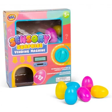 Mini Sensory Surprise Vending Machine with 12 collectible eggs, featuring 6 mochis and 6 fidgets for a fun sensory experience.