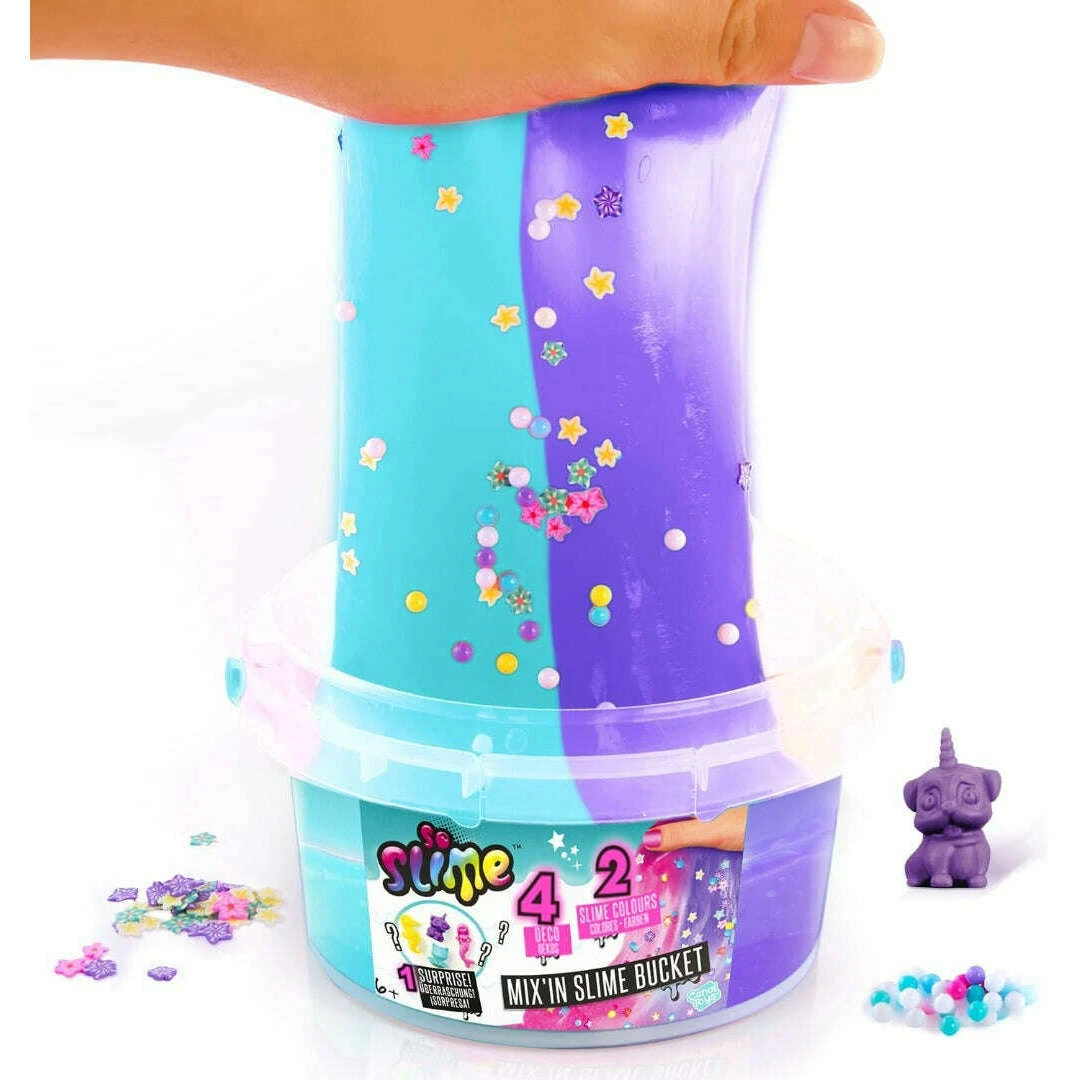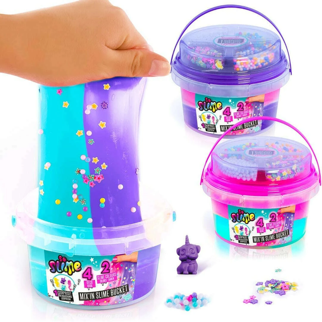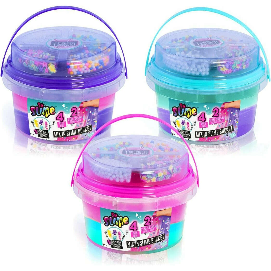Each bucket comes with a special character to hide in the slime too! 3 fun slime colours to collect!