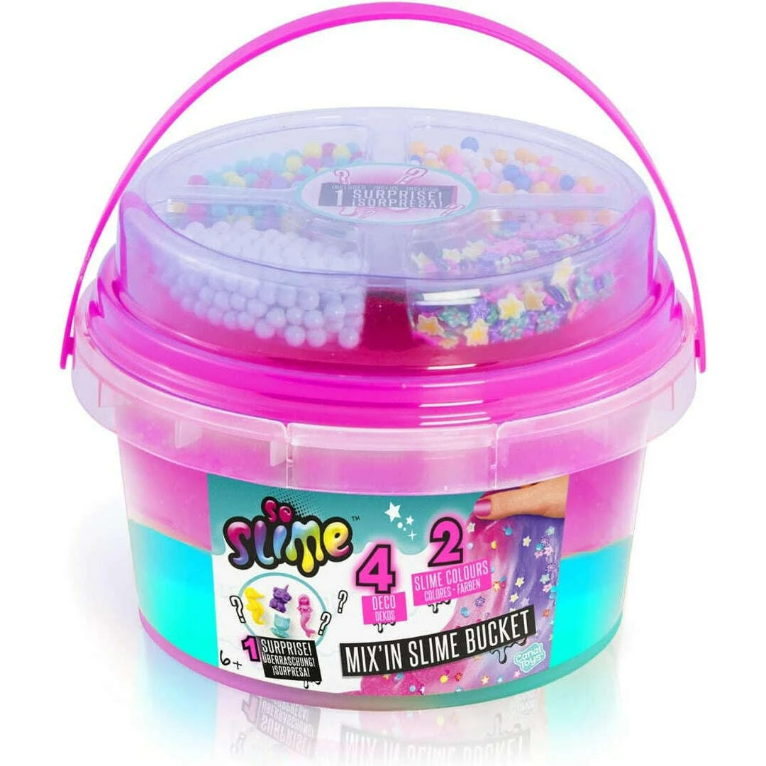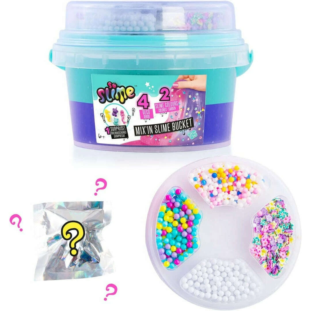 Take your slime everywhere with you in the handy storage bucket. Playing with slime is so satisfying and fun! Squish and mix in the decorations to create different styles and textures.