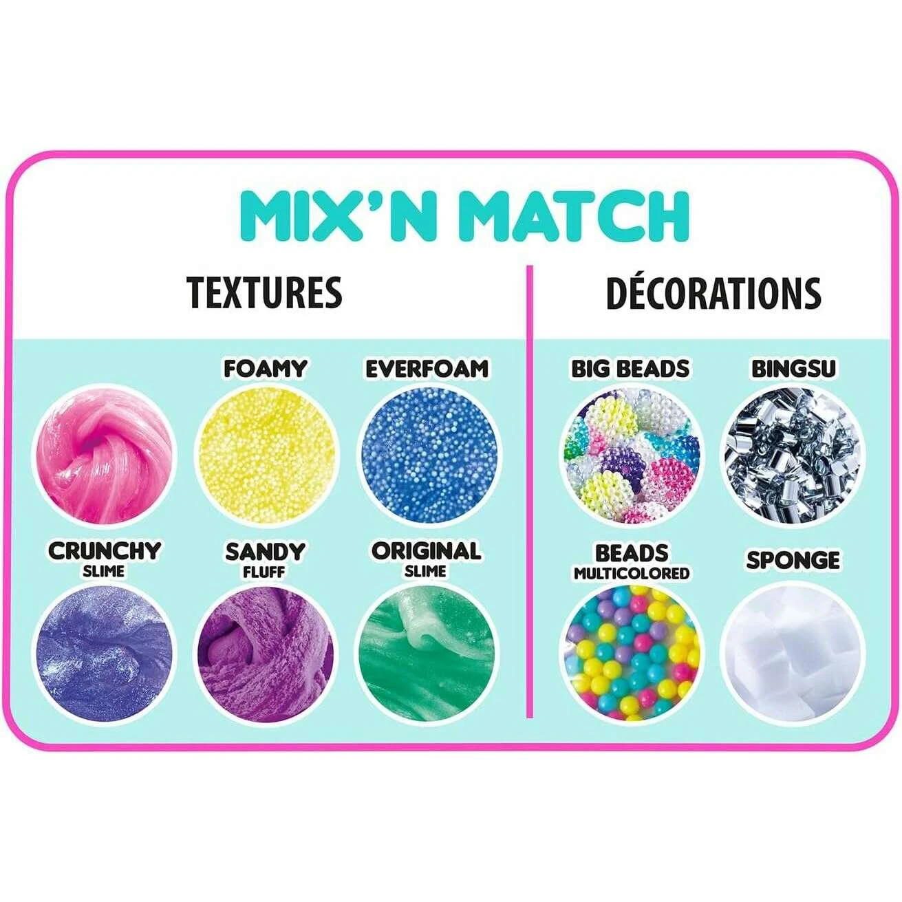 The desk includes six different compound textures to discover and four fun decorations to mix in for more slilme sensations!
