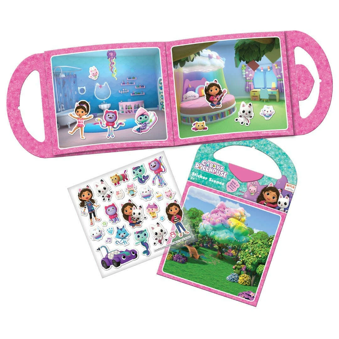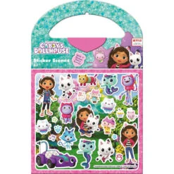Repeatedly create stories with reusable stickers in this handy booklet with carry handle.