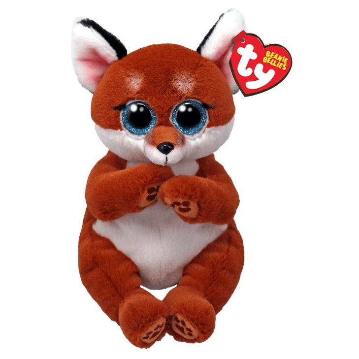 Witt is a rusty-brown coloured fox with glittery, blue button eyes and a black nose. She has a white belly and chin and white airbrushing over her eyes. She has brown coloured paw pads and white on the tip of her bushy tail.
