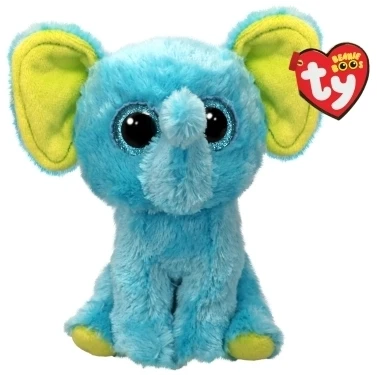Trunkles is a blue Elephant Beanie Boo. They have glittery blue eyes. and green ears and feet.